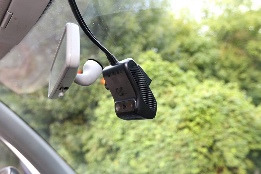 Na prvý pohľad netradičný, ale príjemný dizajn kamery v sebe ukrýva dva objektívy. Jeden sníma jazdu a ten druhý smeruje do kabíny motorového vozidla. Ako bonus obsahuje kabínová kamera aj nočné videnie.