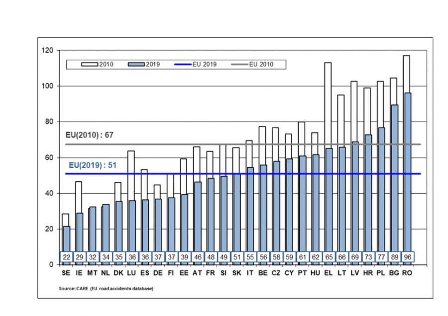 SR sa v roku 2019 držala na priemere EÚ, ktorým je 51 úmrtí na 1 mil. obyvateľov.