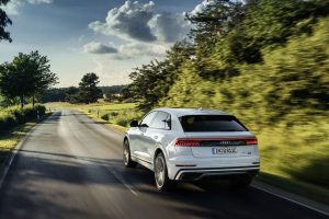 Audi ponúka SUV v štýle kupé v dvoch výkonových stupňoch, ktoré sa odlišujú mimo inej stratégií podpory spaľovacieho motoru elektromotorom. Výkonnejší variant Q8 60 TFSI e quattro, dosahuje s výhradne elektrickým pohonom dojazdu až 48 kilometrov podľa metodiky WLTP. Verzia Audi Q8 55 TFSI e quattro má podľa WLTP dojazd až 49 kilometrov. Elektromotory môžu zaisťovať pohon vo vlastnej réžii až do rýchlosti 135 km/h.