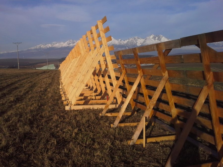 Drevené bariéry sú konštrukčne riešené z troch oporných dielcov v tvare A, ktoré sú položené na bočnej hrane. Na náveternej strane sú prichytené dosky, ktoré slúžia na zachytávanie previevaného snehu.