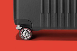 Otočné, 360-stupňové kolieska s guľôčkovými ložiskami odrážajú asymetrický motív dezénu P Zero™. Test hluku prevedený v laboratóriách Pirelli potvrdil, že tieto nové kolieska poskytujú 10% redukcie hluku a jeho homogénnejšiu distribúciu v celom zvukovom spektre, zvlášť v porovnaní s už tak tichými kolieskami zo série kufrov Montblanc #MY4810. Je to práve vďaka špeciálnej gumovej zmesi vyvinutej vo výskumných a vývojových laboratóriách značky Pirelli.