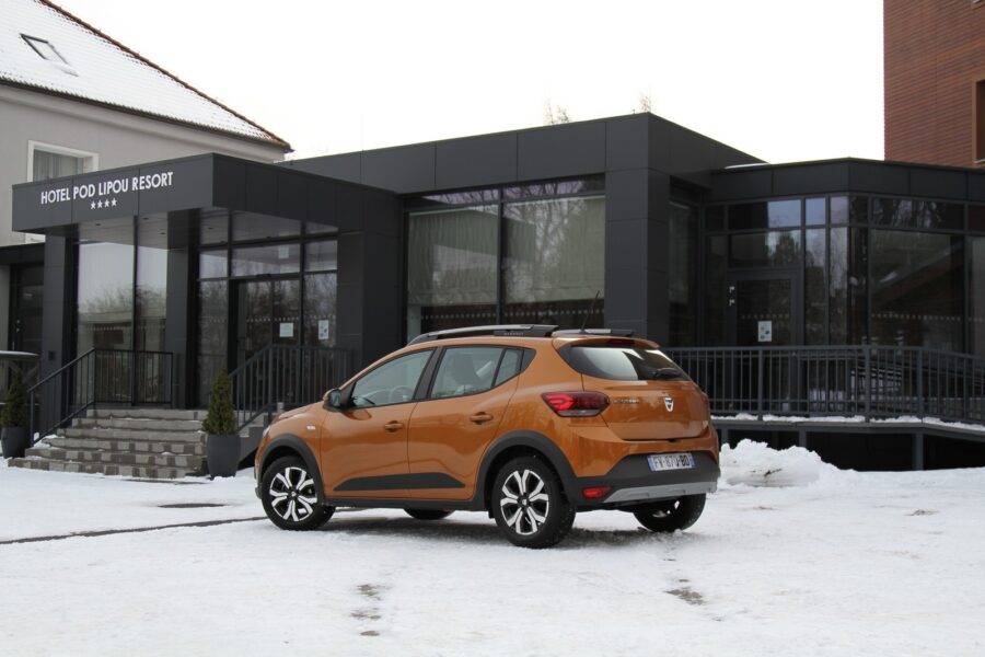 Mne sa už aj predošlá generácia páčila, ale táto nová je ešte krajšia a už skutočne nikto nemôže ani len pomyslieť na to, žeby nové Sandero nejakým spôsobom zaostávalo za etablovanými a akceptovanými značkami. Skrátka dizajnovo dozrelo a už na ňom nenájdete ani jeden jediný prvok, ktorý by pôsobil lacno. Maska chladiča, svetlomety, zadné skupinové svetlá, zrkadlá, kľučky dverí… skrátka všetko pôsobí vyzreto. Ja osobne chválim, že si Sandero pritom zachovalo triezvy dizajn. Zaujímavosťou sú LED denné svetlá v tvare otočeného písmena Y. Verzia Stepway má svetlú výšku až 178 mm, čo je o 41 mm viac ako má bežné Sandero a má aj crossoverové ochranné prvky okolo karosérie, ale tiež strešné lyžiny, ktoré môžete otočiť naprieč a využiť ako priečne nosiče. Nepotrebujete teda kupovať na lyžiny nosiče. Riešenie, ktoré potvrdzuje princípy Dacie – šikovné, praktické, jednoduché, spoľahlivé a dostupné riešenia. Mimochodom, plus 41 mm svetlej výšky je dané súčtom dvihnutého podvozka a väčšieho priemeru kolies.