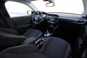 To, čo platí pre exteriér, v podstate platí aj pre interiér. V Corse sa sedí hlboko a mne sa to páči. Platí to, samozrejme, pre prípad, že je sedadlo v najnižšej polohe. Predné sedadlá majú výrazné tvarovanie s pevným bočným vedením. Tvarovaný volant je nastaviteľný v širokom rozsahu a výborne padne do ruky. Aj prístrojová doska pôsobí športovo – tvary, použité materiály vrátane dekoračných líšt, úzke výduchy klimatizácie, centrálny displej natočený k vodičovi… Všetko navodzuje pocit, že sedíte v aute so športovým nádychom. Do neba volajúcu výčitku však smerujem k digitálnemu prístrojovému štítu. Displej totiž vypĺňa iba časť kaplnky, kraje sú zaslepené plastom, pod ktorým sú kontrolky. Navyše samotný displej ponúka nie práve používateľsky prívetivé zobrazenia. V tomto prípade konštruktéri doslova zahodili potenciál digitálneho displeja. Dúfam, že im tie ušetrené eurá stáli za to.
