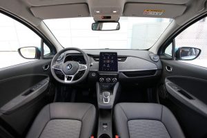 V Zoe sa sedí výrazne vyššie, oproti Corse doslova ako na barovej stoličke. Aj samotné sedadlo je menej tvarované. V praxi to znamená, že sa do Zoe ľahšie a pohodlnejšie nastupuje, ale sedí sa v ňom horšie ako v Corse. Treba povedať, že to vypláva na povrch iba pri priamom porovnaní. Poloha za volantom totiž ani v Zoe nie je nepríjemná a vyšší posed bude najmä dámam doslova vyhovovať. Aj v Renaulte je volant nastaviteľný v oboch smeroch v širokom rozsahu. Prístrojová doska Zoe pôsobí omnoho sofistikovanejšie ako v Corse. Sofistikovanejšie pôsobí vertikálny displej,  nielen tak vyzerá naoko, ale skutočne je sofistikovanejší. Má krajšiu grafiku, rýchlejšie reakcie, prepracovanejšie menu. Sofistikovanejší je digitálny prístrojový štít aj ovládanie klimatizácie. Doslova úchvatne pôsobí plávajúca konzola voliča prevodovky. V Corse som nevedel, kam dať drobnosti, v Zoe si môžem vyberať, ktoré kam dám. Prepracovanejšie sú aj odkladacie priestory. Skrátka Renault je, čo sa týka prístrojovej dosky, minimálne o krok pred Oplom. A je tu ešte jedna vec: naše Zoe má 1× AUX, 4× USB a 1× 12 V  konektor, testovaná Corsa iba 1× USB a 1× 12 V konektor. Na druhej strane, Zoe má impulzné ovládanie iba pre vodičovo okno. Mimochodom, oba modely majú vyhrievané predné sedadlá aj volant.