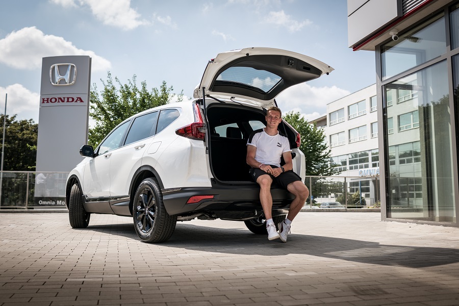 Na dealerstve automobilky Honda, spoločnosti Omnia Motors a.s. v Bratislave, včera zástupca spoločnosti HME Slovensko Ing. Patrik Šolc odovzdal vozidlo Honda CR-V e:HEV Sport Line nášmu čerstvému olympionikovi Jánovi Volkovi.