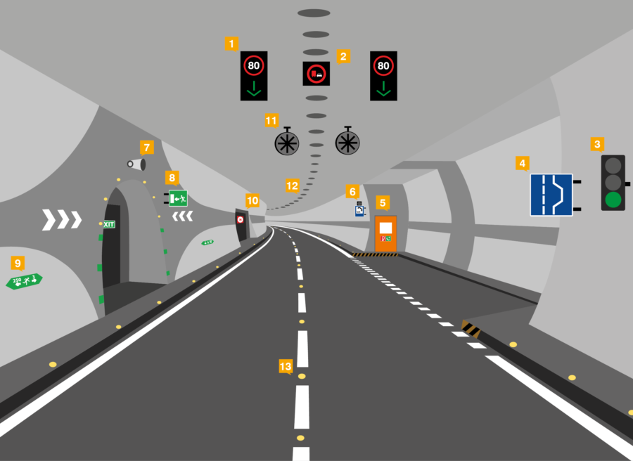 Pred každým tunelom nájdete značku s inou frekvenciou rádia. V prípade nehody v tuneli sa prostredníctvom rádia dozviete ako postupovať.