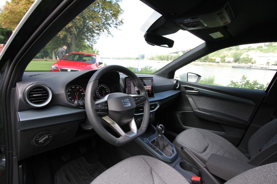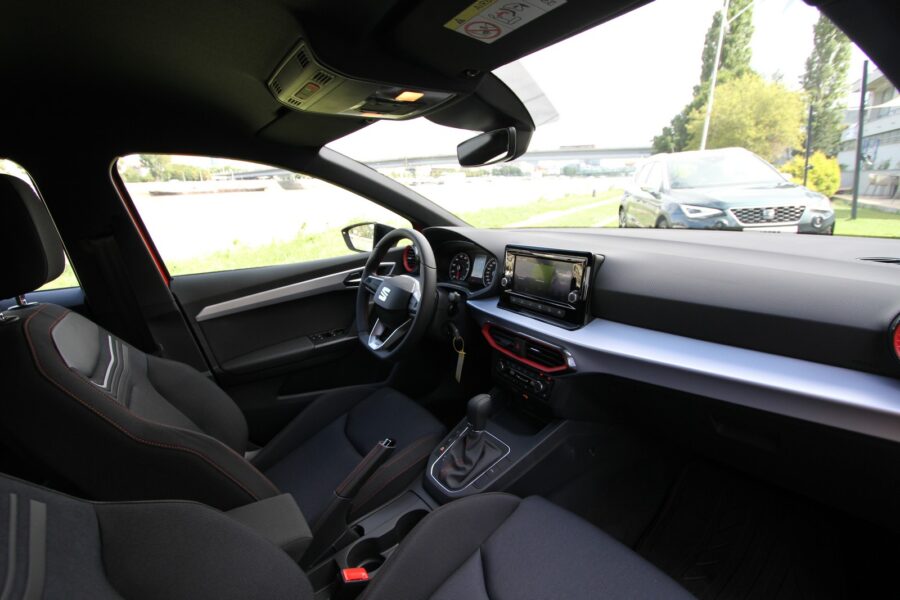 Zatiaľ čo zmeny na exteriéri ťažko rozpoznáte, faceliftovaný interiér spoznáte okamžite. Je totiž celkom iný. Dominantou je voľne stojaci dotykový displej infotainmentového systému – buď s 8,25 alebo 9,2 palcovou uhlopriečkou. Vďaka vyššej polohe je displej v lepšom zornom poli vodiča. K dispozícii je systém Wireless Full Link, ktorý umožňuje bezdrôtové zrkadlenie smartfónu na displej, a to tak pre mobily operujúce na platforme Apple CarPlay aj Android Auto. Ibiza má integrovaný systém SEAT Connect so zabudovanou eSIM kartou, čo umožňuje automatické volane pomoci pri nehode, ale zároveň sprístupňuje množstvo funkcií na diaľku – napríklad lokalizáciu vozidla, odomknutie alebo zamknutie auta na diaľku, skontrolovanie stavu paliva v nádrži, upozornenie na prekročenie stanovenej rýchlosti alebo na opustenie vyznačenej oblasti, keď auto požičiate niekomu inému, trebárs dieťaťu… Keďže sa displej dostal úplne hore, stredové výduchy klimatizácie museli ísť nižšie – v podstate si vymenili medzi sebou miesto. A priznám sa nie je to ideálne riešenie. Dodávam, že výduchy klimatizácie na krajoch prístrojovej dosky sa zmenili z hranatých na okrúhle. Navyše dostali štýlové farebné dekoračné lemy (žltá pre výbavu Style, svetlofialová burgundy pre výbavu Excellence a červená pre verziu FR, resp. v opcii sivá pre výbavu Style), ktoré môžu byť aj podsvietené a dokonca si môžete meniť aj intenzitu podsvietenia. Dôležité je tiež, že sa Ibiza vracia k mäkčenému plastu na prístrojovej doske, čím získava na exkluzivite. Páči sa mi, že ovládanie klimatizácie ostalo pôvodné, teda otočnými ovládačmi a tlačidlami. Keď som spomenul dotykový displej, musím doplniť aj to, že k dispozícii máte aj plne digitálny prístrojový štít s 10,25-palcovou uhlopriečkou, ktorý poskytuje niekoľko režimov zobrazenia.