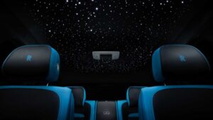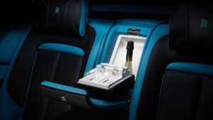 Zároveň však pripomínajú dramatický mechanický zámer modelu Ghost Black Badge. Špecialisti Bespoke vytvorili komplexnú a zároveň jemnú väzbu, ktorá zahŕňa hlboký diamantový vzor vykreslený uhlíkovými a kovovými vláknami. Na povrchy interiérových prvkov sa lisuje niekoľko vrstiev dreva a ako najvrchnejšia základná vrstva je použitá čierna bolívijská dyha. Ta tvorí tmavý základ pre následujúce vrstvy z technických vlákien.