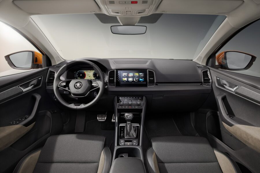 Modernizovaná ŠKODA KAROQ bude počas roka 2022 štandardne vybavená virtuálnym kokpitom mini s displejom s veľkosťou 8″, ktorý nahrádí klasické analógové ukazovatele. Od výbavového stupňaStyle je na želanie ponúkaný virtuálny kokpit s 10,25″ displejom a piatimi režimami zobrazenia, ktoré možno individuálne nastaviť.