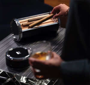 Ručne spracovaná truhla má brilantné opracovanie. Telo je vyrobené z hliníku potiahnuté reliéfnou kožou Rolls-Royce Havana a doplnené dyhou Obsidian Ayous Open Pore. Nechýba označenie značkou automobilky a symbolom Spirit of Ecstasy. Otváranie truhly je inšpirované mechanizmami z vozidiel. Vo vnútri nájdeme ručne fúkané poháriky. Časť s cigarami má na vonkajšej strane vlhkomer pre kontrolu stálosti prostredia.