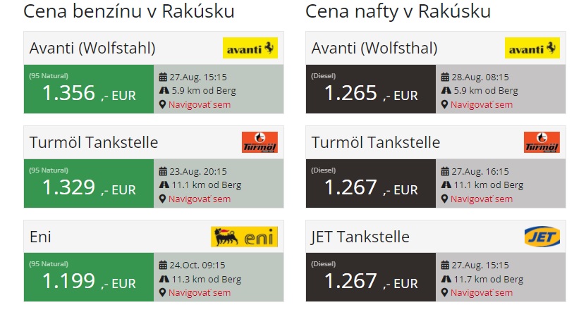 Rakúsko je tiež dlhodobo výrazne lacnejšie ako Slovensko. Pozrite si aktuálne ceny z portálu rakusko.sk