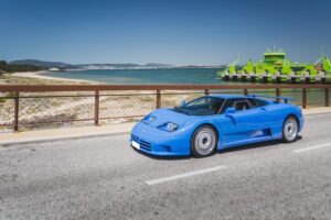 Bugatti EB110 GT získalo aj štatút najrýchlejšieho sériovo vyrábaného športového automobilu. Na ceste jeho 3,5-litrový motor V12 poháňaný štyrmi turbodúchadlami sľuboval maximálnu rýchlosť 340 km/h. Celkovo za z atraktívneho športiaku GT vyrobilo len 95 exemplárov. Ponúkaný modrý športiak z parížskej aukcie síce od výroby vlastní už tretí majiteľ, ale celkovo má najazdených len 10 000 km.