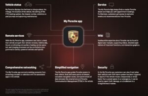 Okrem toho súčasne vytvorí jediný prístupový bod do digitálneho sveta Porsche prostredníctvom moderného rozhrania. Aplikácia My Porsche sa stane všestranným nástrojom pre každého šoféra legendárnych športových vozidiel Porsche a bude kompatibilná s modelmi Porsche od roku 2016 a mladšími. Po prepojení smartfónu a vozidla Porsche aplikácia zobrazuje dôležité parametre vozidla a môže byť použitá tiež pre vzdialený prístup a ovládanie vybraných funkcií auta cez telefón. My Porsche podporuje rovnako procesy nabíjania elektromobilov a plug-in hybridov, uľahčuje kontakt so svojim predajným a servisným miestom, plánuje a rezervuje servisné termíny a dokáže pomáhať s odpoveďami na otázky týkajúcich sa vozidla samotného.