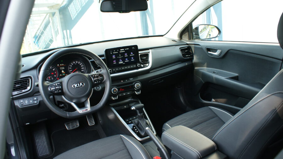 V interiéri modernizáciou veľa zmien nenastalo, no to mi vlastne vyhovuje. Veď to, na čom mi v cenovo dostupnom mestskom aute záleží, spĺňa Kia Stonic dokonale. Polokožené sedadlá prislúchajúce k verzii GT-Line majú ideálny tvar, príjemný posed a dokonca pozdĺžne nastaviteľnú opierku hlavy. Volant padne dobre do ruky a celkovo som si v aute rýchlo našiel komfortný životný priestor. Nová 8-palcová dotyková obrazovka, ktorá podporuje Android Auto i Apple Car Play a dokonca akceptuje pripojenie dvoch zariadení naraz, na pohľad pekne ladí s manuálnym ovládaním klimatizácie. Spolu s pomerne veľkým množstvom úložných priestorov mi teda ponúka všetko, čo od auta tohto typu očakávam. Chválim dostatok miesta na zadných sedadlách i 352-litrový batožinový priestor. Škoda len, že mild-hybridná verzia nemôže mať rezervné koleso, keďže pod podlahou kufra sa nachádza akumulátor.