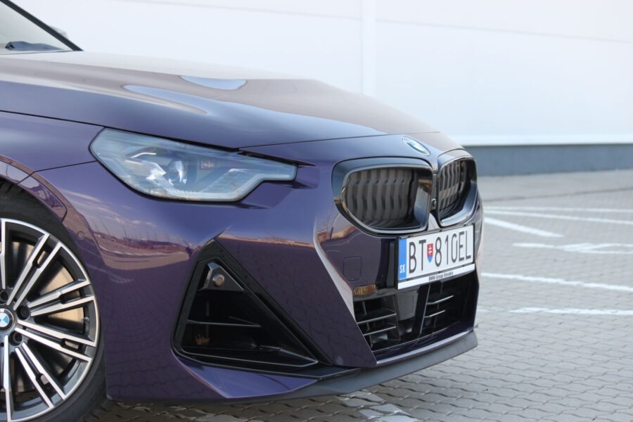 Ešte jeden taký malý pozitívny dojem, hneď po príchode k autu. Intenzívne vo mne zaúradovali endorfíny, keď som zbadal, že importér si pripravil verziu vo fialovej farbe, a vo mne automaticky vzplanuli spomienky na legendárny odtieň Techno violet, ktoré preslávili BMW M3 (E36) a M5 (E34). Teraz sa však označuje ako Thundernight.