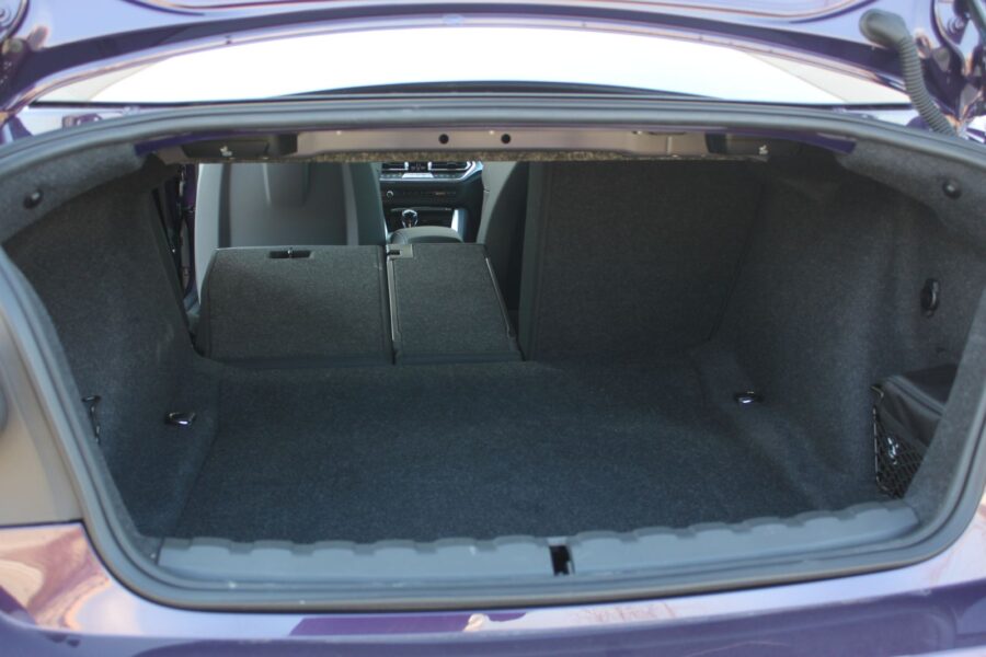 Výrazne iná, mohutná je aj rúčka dverí, ktorá je v tvare predlženého C, alebo otočeného U. S ohľadom na nastupovanie dozadu by som však prijal trošku pevnejšie pánty dverí, lebo stačí, že auto parkuje mierne do kopčeka a už sa dvere pri usadaní samé zatvárali. Do miesta pre posádku to nie je žiadny kráľ, ja osobne som však ostal prekvapený a úplne spokojný, že som si sám za seba do zadnej krátkej a hlbokej dvojmiestnej lavice sadol úplne v pohode, akurát chodidla pociťovali trošku absenciu priestoru. Batožinový priestor je tiež viac ako len postačujúci, pod manuálne ovládaným vekom sa skrýva 390 dm3, ktoré viete zväčšiť aj sklopením zadných sedadiel. Proste je to coupé ako ma coupé aj byť.