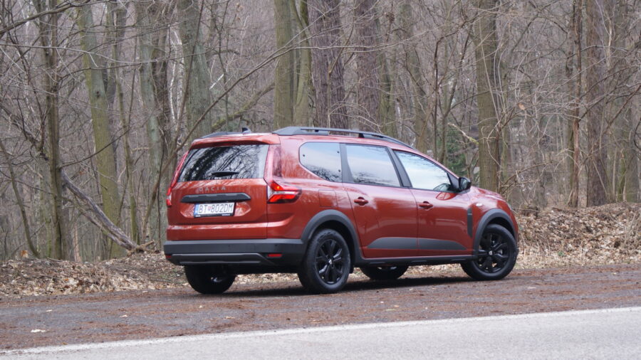 Na nič sa nehrá, je praktické a dokáže si poradiť s každou situáciou. Ide o vôbec najdlhší model v ponuke značky Dacia, na dĺžku Jogger meria celkovo 4 547 mm a má rázvor osí náprav dlhý 2 897 milimetrov. Auto stojí na 16-palcových diskoch kolies, čo spolu s rozmerom pneumatík 205/60 naznačuje, že výrobca kládol dôraz na komfort a dobrú prejazdnosť viac než na povrchovú krásu. Dacia Jogger má na svojej streche modulárne pozdĺžne uložené lyžiny, ktoré sa však dajú jednoducho prerobiť na priečne a odnesú rôzne príslušenstvo (strešný box alebo nosič na bicykle) s váhou až do 80 kg. Netreba tak dokupovať žiadne priečniky, čo budúci majiteľ isto ocení.