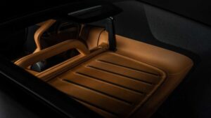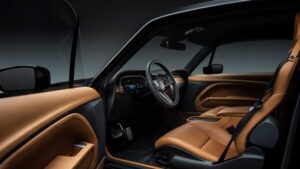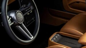 Napríklad na volante môžeme vidieť multifunkčné tlačidlá, klasické budíky nahradil digitálny prístrojový štít a uprostred palubnej dosky je výrazný vertikálne orientovaný infotainment. Namiesto voliča prevodovky potom vozidlo dostalo len niekoľko tlačidiel v opierke na ruky, s ktorými si ako každý elektromobil bohato vystačí. Posádka sa môže tešiť na vysoký komfort parádnych sedadiel a nechýba ani bohaté čalúnenie výplne dverí.
