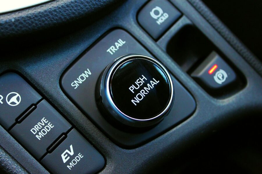 Verzia s pohonom oboch náprav je vždy full-hybridná. Zadná náprava nie je prepojená s prednou pomocou kardanového hriadeľa, ale o pohon zadných kolies sa stará maličký elektromotor s výkonom len 3,9 kW (5,3 k), ale zato so slušnou porciou krútiaceho momentu, a to 52 Nm. Aj zadná náprava je konštrukčne iná. Kým prednokolka má vzadu jednoduchú torznú nápravu, verzia 4×4 má nápravu s dvojitými lichobežníkmi. Hybrid má spaľovací motor s výkonom len 68 kW a systémový výkon je 85 kW, pričom čisto benzínová verzia bez hybridu má 92 kW. Celkový systémový výkon teda hrá v neprospech hybridnej štvokolky, hlavným benefitom je práve istota skutočného pomocníka v podobe funkčného pohonu všetkých kolies. Na pevnom podklade s jasnou priľnavosťou pneumatík malý elektromotor pomáha do cca 30 km/h za hodinu, vo vyšších rýchlostiach sa mi ho už do práce zapojiť pri plnej akcelerácii nepodarilo. Iná situácia nastane vtedy, keď predné kolesá prekĺznu, a aj pri jazde po poľných cestách rýchlosťou do cca 50 km/h sa malý motorček pri strate trakcie predných kolies pod plynom statočne a rýchlo pripájal a to nielen v terénnejších režimoch Trail a Snow, ale aj v bežnom normálnom cestnom režime. Mimochodom, zadná náprava sa pripája len do rýchlosti 70 km/h. Všimli ste si, že takýto malé crossover a má dva režimy pre jazdu v teréne? Väčšina konkurentov ani pohon 4×4 neponúka, nieto ešte dva režimy pre jazdu „off-road“. Trochu zvláštne je, že tlačidlo asistenta zjazdu z kopca umiestnili mimo od voliča jazdných režimov, a to ku tlačidlu na výhrev vodičovho sedadla. Normálny režim ešte pracuje v režime Eco a Power, keď sa trošku zmení nastavenie a prejav pohonného ústrojenstva. Ak je batéria dostatočne nabitá, môžete si tlačidlom navoliť aj elektrický režim na skutočne krátku, pokojnú a pomalú bezemisnú jazdu.