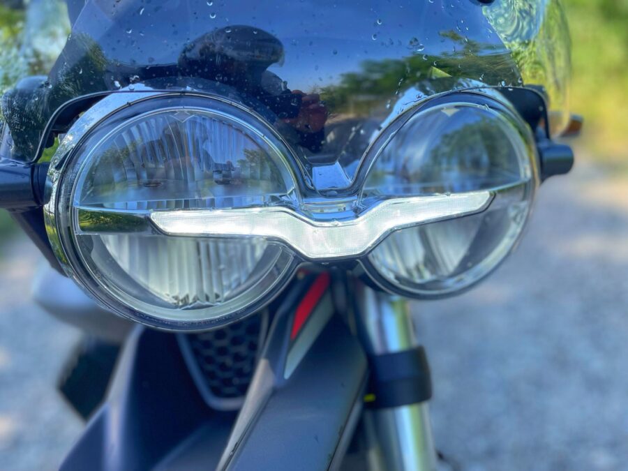 Začnem inak. Môj prvý kontakt so svetom cestovných strojov bol za riadidlami BMW R 1200 GS HP2. Dodnes si pamätám výšku sedadla a to, s akým strachom som na tej motorke zastavil a opatrne zošliapol na špičky, lebo bola na mňa vysoká. A tento zážitok ma vtedy odklonil od enduro strojov a prišiel som im na chuť až neskoršie. Ak by som svoj prvý kontakt absolvoval na Moto Guzzi V85 TT, tak by môj príbeh mal celkom iný priebeh. Za riadidlami Moto Guzzi som si uvedomil, že v podstate som iba nasadol a odišiel a už po tretej zákrute som naklápal motorku tak, ako keby som na nej jazdil už niekoľko týždňov. Na križovatke som dočiahol na zem bez problémov a to je možno prvá pointa. Toto enduro by som odporučil aj ženskému moto publiku.