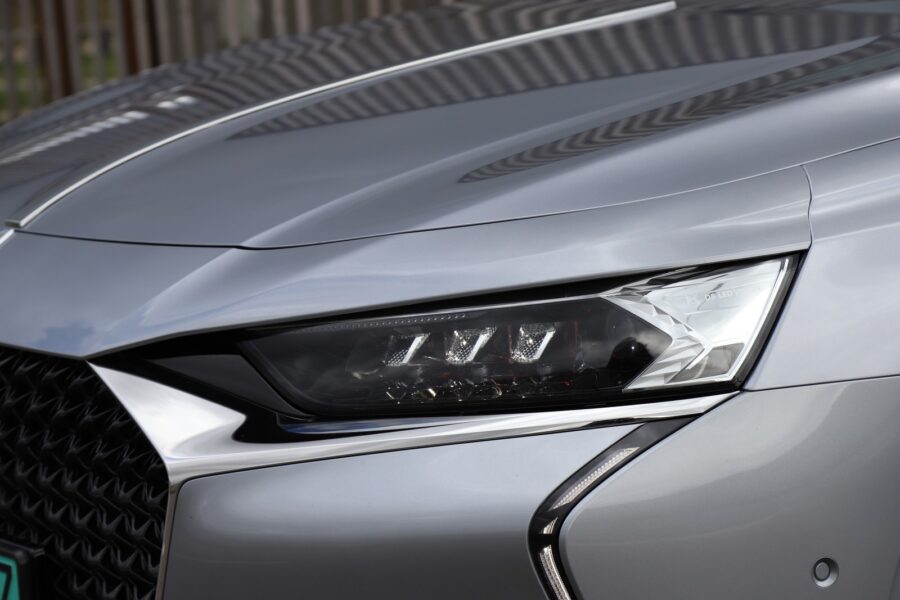 Mňa najviac fascinuje zadná časť DS 9-ky. Fascinuje ma skrz toho, že pripomína kupé, skrz svetiel so špecifickým tvarom a umelecky poňatou vnútornou štruktúrou, skrz intarzíí vo farbe luxusne pôsobiaceho matného chrómu, skrz linky, ktorá smeruje k trojuholníku okienok zadných dverí, skrz tretie brzdové svetlo umiestneného absolútne unikátne v spodnej hrane zadného okna, nie hore… Fascinuje ma vlastne každým detailom. Vpredu by som upriamil pozornosť na dve veci. Tou prvou je lem masky chladiča, ktorý na hornej strane nemá linku, ale na druhej strane podčiarkuje svetlomety. V dolnej zasa bočné vstupy vzduchu. Druhou vecou, na ktorú by som upriamil pozornosť sú samotné svetlomety. Jednak totiž pôsobia sebavedomo a jednak vám jednotlivé segmenty na privítanie, resp. na rozlúčku zahrajú efektnú hru – pekne postupne jeden po druhom sa otočia o 180 stupňov. Za zmienku stoja aj zapustené kľučky, ktoré sa vysunú až keď pristúpite k autu.