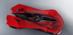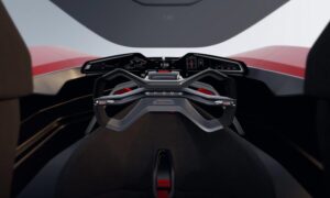 Štúdia je však konštruovaná ako jednomiestna a šofér sedí uprostred. Nad futuristickým karbónovým volantom so sploštenou hornou a spodnou časťou je umiestnená plochá obrazovka, ktorá slúži tiež ako veterná clona. Dôležité informácie sa premietajú priamo na hľadáčiku prilby pilota, podobne ako na head-up displeji. Aktívny kokpit pilota s odpruženým sedadlom je navrhnutý pre optimálne vyrovnávanie preťaženia.