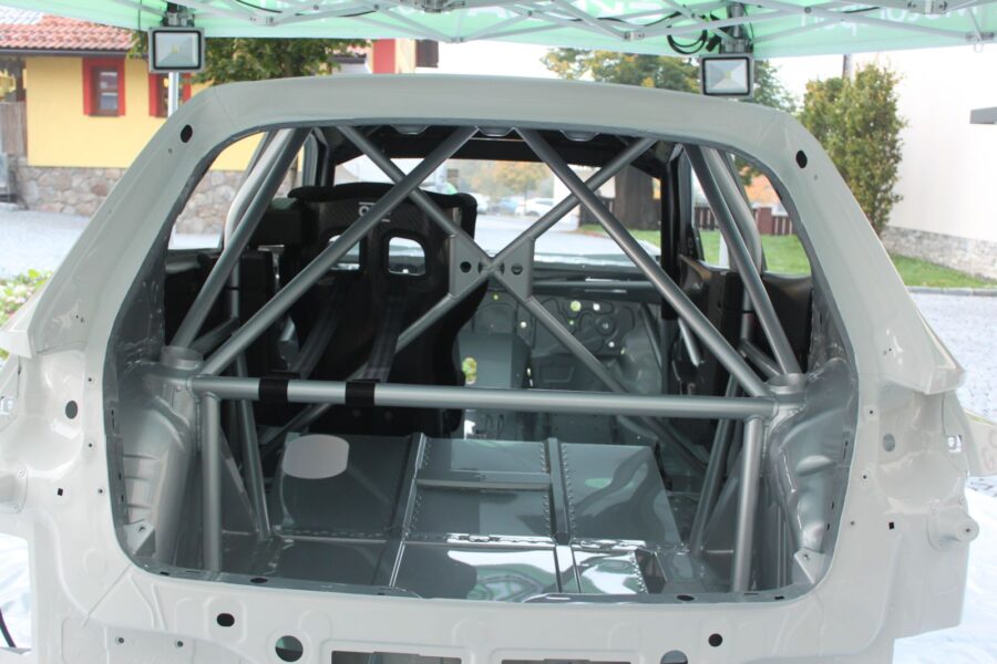 Pri vystavenom skelete karosérie vystuženého pevnostným rámom som obdivoval práve ten. Bez pár centimetrov použili prakticky 36 metrov rúrok z chrómovo-molybdénovej ocele.