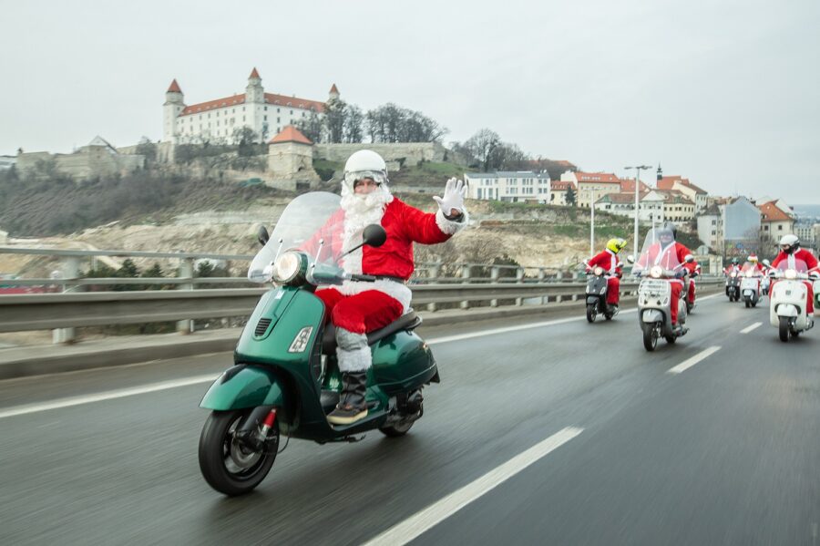 Jazda fanúšikov skútrov Vespa, ktorí v spolupráci s Vespa Klubom, spoločnosťou Faber Moto a Nadáciou Deťom s rakovinou vyštartujú na jazdu mestom v santa oblečení. Po minuloročnom úspechu sa Vespisti opäť vydávajú na Vianočnú Santa jazdu v Bratislave a v Košiciach, aby deťom darovali sviatočné balíčky.