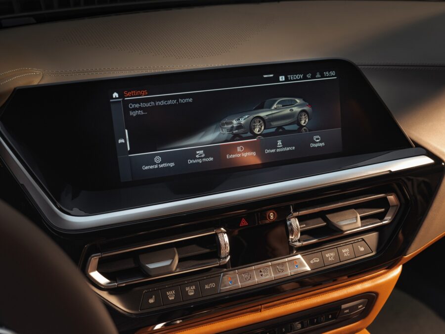 Pri pohľade zboku padne do oka zreteľne rozpoznateľné spracovanie proporcií shooting brake typické pre značku BMW. Dlhá kapota, aerodynamické obrysy strechy a mohutná zadná časť tvoria charakteristický dvojpriestorový dizajn, zatiaľ čo predĺžená grafika bočných okien s Hofmeisterovým oblúkom a rozšírenými blatníkmi zadných kolies podčiarkujú jeho športovú eleganciu.