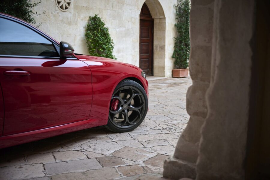 Jedinečný výrazný vzhľad modelov špeciálnej edície dotvárajú ďalšie prvky: vložka prednej masky chladiča tvaru “V” (čiernej farby pri modeloch Giulia a Stelvio, vo farbe Dark Miron pri Tonale), talianske trikolóry na krytoch vonkajších spätných zrkadlách a disky kolies z ľahkej zliatiny (21” pre Stelvio, nové 19” pre Giulia a 20” pre Tonale) v kombinácii s červenými brzdovými strmeňmi Brembo. Okrem toho typickému športovému charakteru celého modelového radu dodávajú elegantný nádych vonkajšie plastové diely – lemy blatníkov a nadstavce bočných prahov – lakované vo farbe karosérie, ktoré sú v takomto vyhotovení po prvý raz použité na modeli Tonale. Pôsobivý vzhľad C-SUV značky Alfa Romeo ďalej akcentujú lišty v nárazníkoch v matnej farbe Dark Miron, adaptívne svetlomety Full-LED Matrix a dve chrómované koncovky výfuku pri verzii Q4 Plug-In Hybrid.