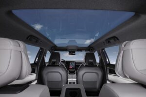 Nový Espace je postavený na modulárnej platforme CMF-CD vyvinutej v spolupráci s Nissanom a Mitsubishi, a ktorú využíva napríklad aj Renault Austral. Vonkajšími rozmermi je menší ako predošlá generácia – o 153 mm na dĺžku, o 43 mm na šírku, o 32 mm na výšku a aj rázvor osí náprav je kratší o 146 mm. Je teda „spratnejší, čo sa vám hodí v garáži, v parkovacích boxoch, ale aj v uliciach. Aby som uzavrel vonkajšie rozmery, svetlá výška je s 20-palcovými kolesami 180 mm. Vnútornými rozmermi však Espace ostáva naďalej veľkorysý, na dĺžku dokonca ponúka viac miesta ako predošlá generácia. Pasažieri v druhom rade majú v závislosti od posunutia sedadiel na nohy až 321 mm a pasažieri v treťom rade 128. Mimochodom, posuv sedadiel v druhom rade je až 220 mm. V päťmiestnej verzii má kufor v závislosti od posunutia sedadiel v druhom rade 581 – 777 dm3 a po sklopení operadiel až 1 818 dm3, v sedemmiestnej verzii máte za tretím radom sedadiel 159 dm3, po sklopení sedadiel tretieho radu 477 – 677 dm3 – opäť v závislosti od posunutia sedadiel v druhom rade. Veľmi dôležitá informácia: päťmiestnu verziu Renaultu Espace dostanete za rovnaké peniaze ako sedemmiestnu. Inými slovami: sedemmiestna verzia nie je o nič drahšia ako päťmiestna. Keď sme pri objemoch, úložné priestory majú dohromady 39 litrov, z toho polovica je vpredu. Na moje prekvapenie, namiesto šuflíka, na ktorý som si pri Renaultoch už zvykol, je pred spolujazdcom klasická výklopná schránka.