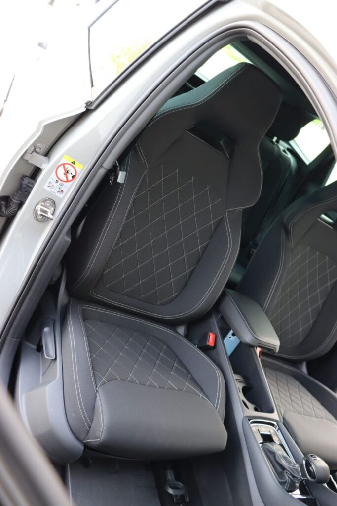 Anatomické predné sedadlá s integrovanou opierkou hlavy v kombinácii s trojramenným volantom jednoducho nemajú chybu. Zmieniť by som chcel doplnkový balíček Plus v hodnote 1850 €. Okrem prvkov bezpečnosti, ako je adaptívne vedenie v pruhu, asistent zmeny jazdného pruhu je to aj audiosystém Canton, a čo je pre mňa, ako človeka čo zbožňuje roadtripy, aj rezerva. Síce dojazdová na oceľovom disku, ale predsa je!