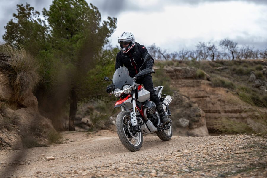 Moto Guzzi V85 TT je univerzálny „all-terrain“ model, ktorý stelesňuje pôvodného ducha V85 s inšpiratívnym vzhľadom a štýlom, ktorý sa vracia do atmosféry 80. rokov k enduro motocyklom, na ktorých ste mohli robiť všetko, od každodenného dochádzania až po dobrodružné cestovanie. Vďaka robustnej konštrukcii a vyspelým technológiám ponúka V85 TT nielen maximálny jazdný komfort na dlhých cestách, ale aj terénne schopnosti. Enduro má obvyklú špičkovú výbavu s manuálne nastaviteľným odpružením, hliníkovým krytom motora, chráničmi rúk, výkonným motorom a najmodernejšími bezpečnostnými prvkami, ako je náklonové ABS a kontrola trakcie. Prídavný jazdný režim “Offroad” navyše zaručuje bezpečnú a príjemnú jazdu v meniacich sa podmienkach. Ergonomicky navrhnutá poloha sedla a veľkorysý na prianie dodávaný systém batožinového priestoru z neho robí ideálnu voľbu pre dobrodruhov, ktorí chcú cestovať po spevnených cestách aj mimo nich.
