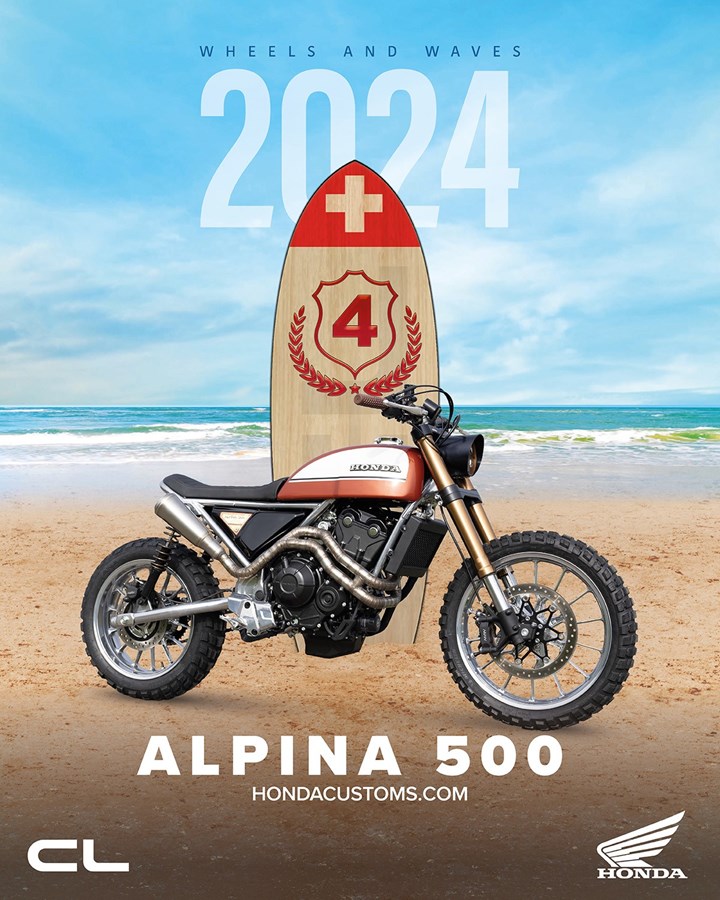 Model Alpina 500, ktorý je oslavou 50 rokov značky Honda Switzerland, vychádza z bohatého odkazu značky Honda a poukazuje na detaily, ako sú palivová nádrž v štýle CB, obnažený podsedadlový rám, či minimalistické sedadlo.