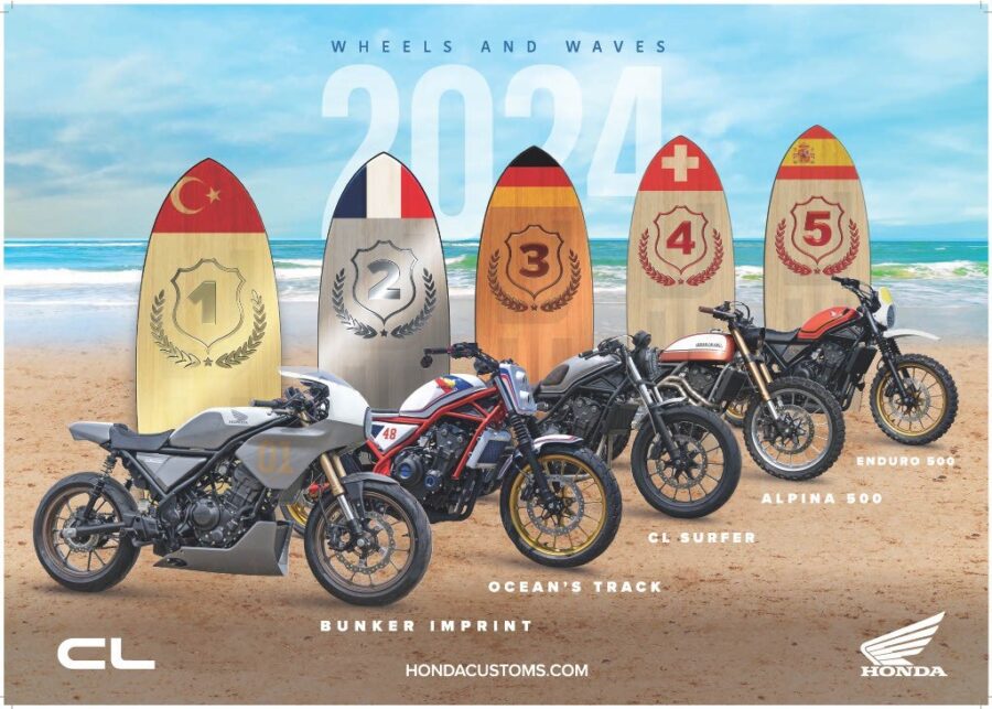 Tretiu priečku na stupňoch víťazov tohtoročného ročníka Hondacustoms zaujal nemecký CL Surfer, ktorý sa inšpiroval krásnymi plážami a pohodovou surferskou atmosférou Biarritzu, kde sa festival Wheels and Waves koná. Model CL Surfer, ktorého autormi sú členovia tímu vlajkového dílerstva Honda Centre vo Frankfurte, sa do tejto atmosféry skvelo hodí: má palivovú nádrž, predné a zadné blatníky v striebornej metalíze (s charakteristickým modrým pruhom), dvojdielne riadidlá, nový výfuk a výrazné hnedé kožené sedadlo.