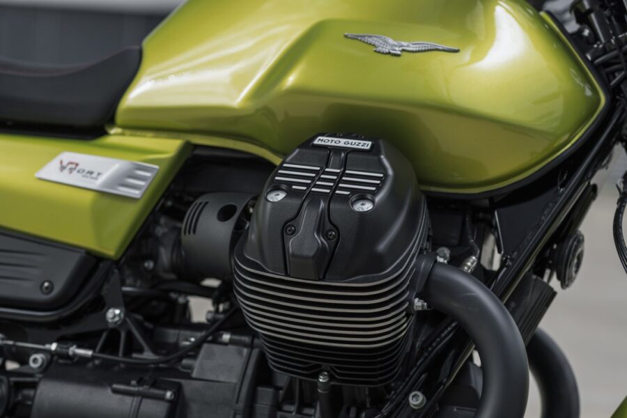 Architektúra motora zostáva ikonická: 90° priečne uložený V-Twin, vzduchom chladený, s rozvodom OHV s vahadlami a dvoma ventilmi na valec – to je hrdá tradícia z Mandella. Objem je 853 cm3 s pomerom vŕtania a zdvihu 84 x 77 mm.