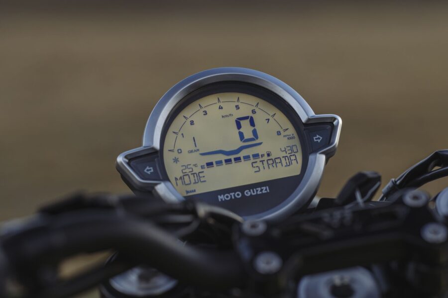 Jednoduchý okrúhly LCD displej, ktorý je súčasťou štandardnej výbavy všetkých modelov, je teraz vybavený prehľadnou grafikou a ďalšími funkciami, ako sú zobrazenie jazdného režimu a rýchlosť nastavená tempomatom. V7 Sport navyše ponúka ukazovateľ hladiny paliva.