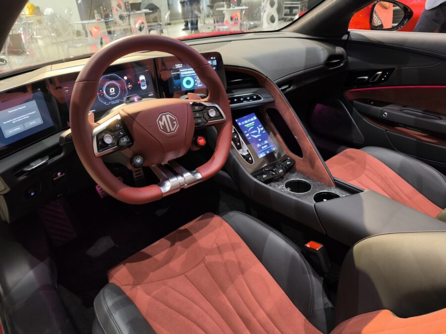 Keď v dnešných časoch nejaká značka uvedie na trh čokoľvek iné ako SUV, tak je to „udalosťou“ a keď to je roadster, tak je to hotový zázrak. Cyberster je nádherný kus auta. Unikátnosťou sú nožnicové dvere, teda dvere, ktoré sa otvárajú smerom dohora. Otvárajú sa elektricky, viete ich ovládať piatimi rôznymi spôsobmi a dokonca si viete nastaviť uhol otvorenia v rozsahu 30 – 76 stupňov. Zaujímavosťou je snímač, ktorý sleduje voľný priestor a keby hrozilo narazenie dverí do prekážky, automaticky zastaví otváranie. Mimochodom, okrem toho, že nožnicové dvere vyzerajú nesmierne cool, majú aj technickú výhodu – pri otvorení zaberajú oveľa menej miesta ako klasické dvere. A to je pri tej šírke akú majú, veľmi dôležité. Po zaparkovaní medzi dvoma autami by ste inak len veľmi ťažko vystupovali alebo nastupovali. Takto vám stačí odstup od vedľa stojacieho auta 0,45 metra. Pri plnom otvorení oboch dverí má Cyberster na šírku 2,36 metra, pričom štandardné parkovacie miesto v Európe je 2,5 – 2,7 m a do výšky dosahujú dvere 1,97 metra, takže ich viete úplne otvoriť aj v podzemných garážach, no v prípade nižšieho stropu či nejakej prekážky sa dvere – vďaka spomínanému snímaču – automaticky zastavia.