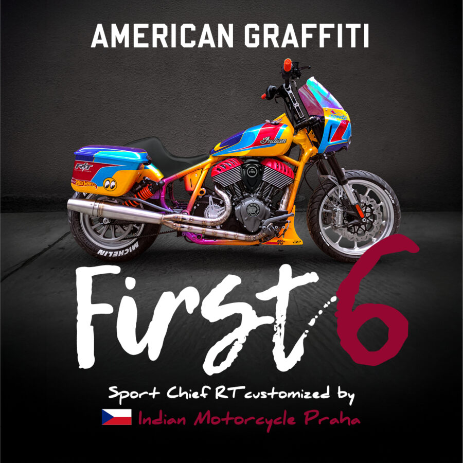 Tím z Indian Motorcycle Praha, zložený z nadšených pretekárov a milovníkov adrenalínu, čerpal inšpiráciu pre svoj custom zo sveta amerických závodov. Názov „American Graffiti“ vznikol prirodzene a okamžite, pretože celý projekt oslavuje ich vášeň pre americkú závodnú kultúru. Kompletné prelakovanie motocykla vrátane rámu podčiarkuje všetko, čo tím na tejto scéne miluje – rýchlosť, výkon, jedinečný štýl aj nespútanú energiu.