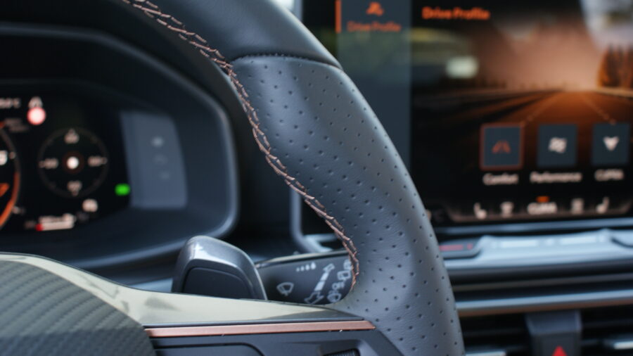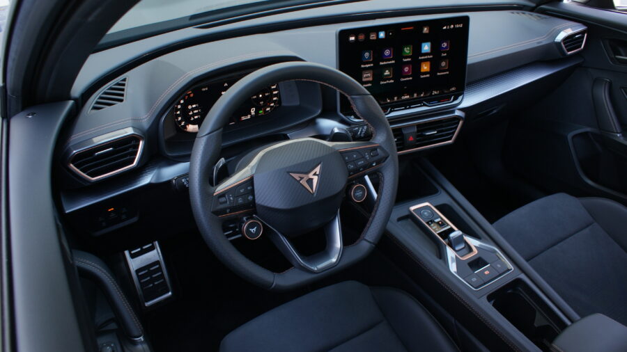 Prevodovka radí rýchlo a vo väčšine situácií intuitívne – pri ostrom tempe občas podrží prevod dlhšie, aby zvýraznila pocit športovosti. Formentor stojí na podvozkovej platforme MQB Evo, no Cupra ostrým verziám s prívlastkom VZ upravila viaceré nastavenia. Adaptívne tlmiče ponúkajú široký rozsah využitia – od príjemného komfortného režimu až po veľmi tuhý športový. Podvozok je celkovo nižší a tuhší, práve preto pôsobí agilne. V
