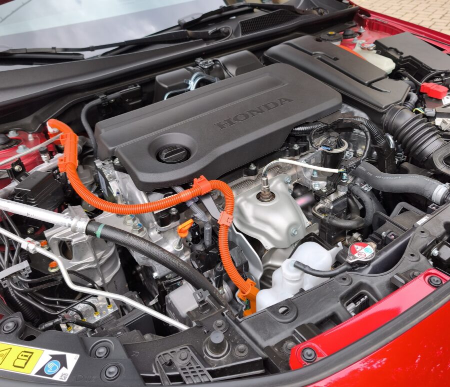 Čo sa týka pohonu, ostala jediná alternatíva – full hybrid s dvojlitrovým benzínovým motorom, ktorý prioritne slúži na výrobu elektrickej energie a do pohonu sa zapája len v špecifických situáciách, typicky pri ustálenej jazde po okreskách či diaľnici. Samotný motor po novom spĺňa prísnejšie emisné limity Euro 6e Bis, to sa však nijako nepodpísalo pod dynamiku vozidla. Maximálna rýchlosť, zrýchlenie z nuly na stovku aj pružnosť ostali nezmenené. Dodávam, že hybridný systém pri plnej akcelerácii simuluje radenie prevodových stupňov, čo podporuje športový charakter Civicu.