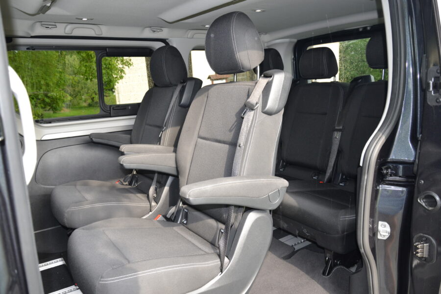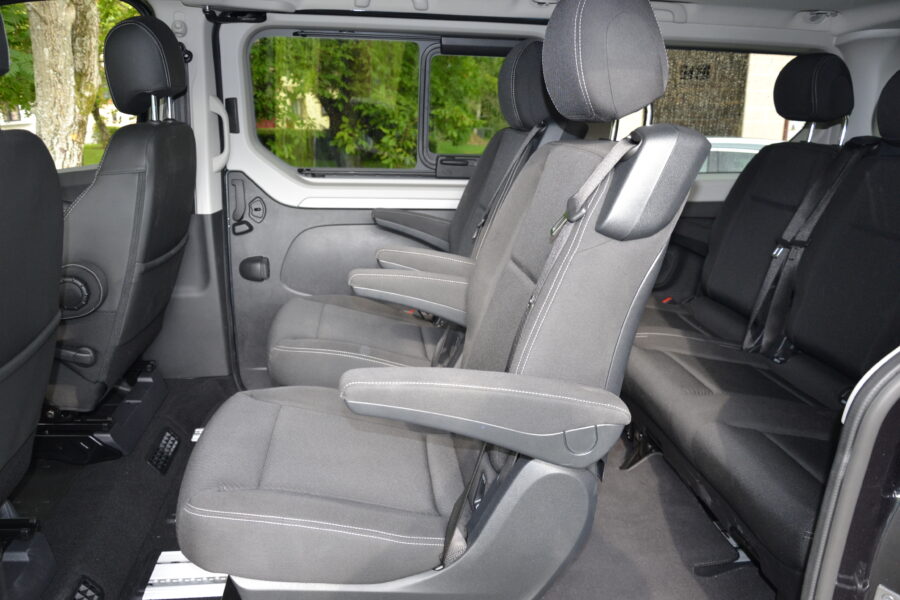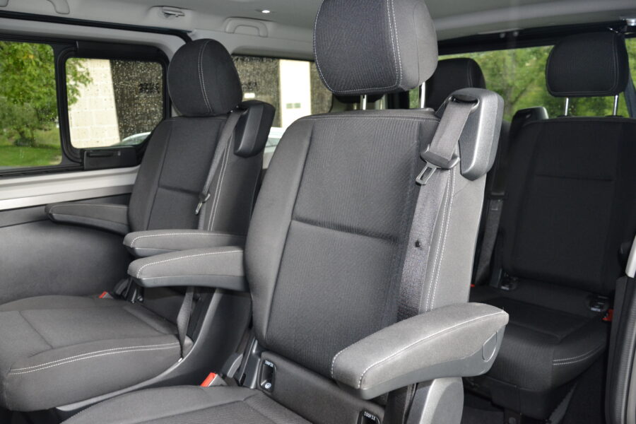 Ja som si vyskúšal verziu s dvoma otočnými kreslami v druhom rade, ktoré sú za príplatok 1 600 eur, trojmiestnou lavicou v treťom rade a ľavými posuvnými dvermi za 650 eur. V Traficu