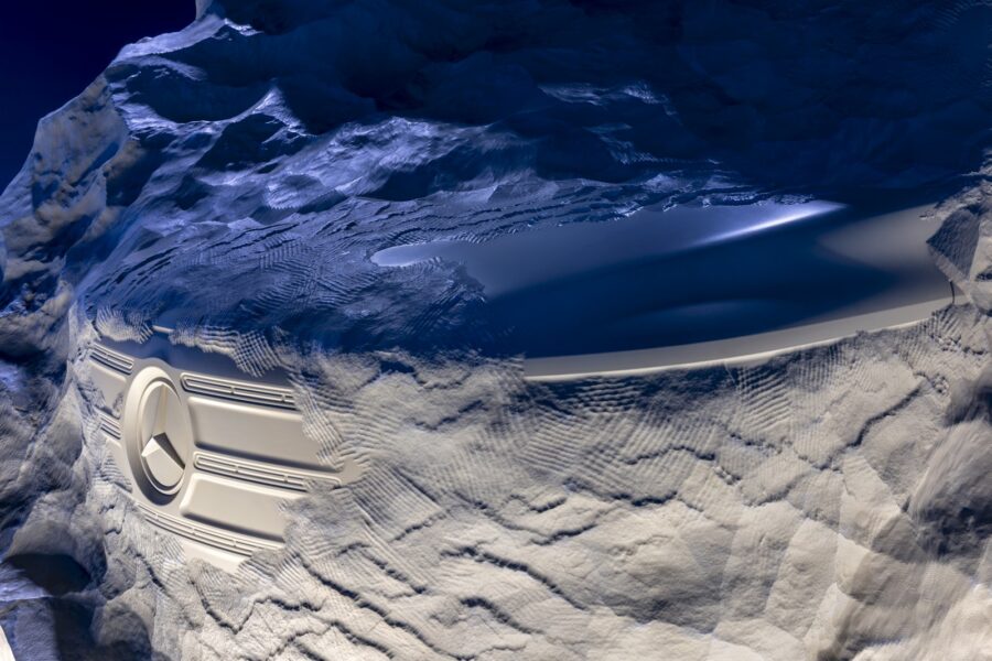 Ťažisko eventu však nebolo zamerané na spomienky, ale naopak na pohľad do budúcnosti. Predstavili nám totiž víziu budúcej generácie Sprinteru, ktorá bude postavená na novej architektúre pre úžitkové vozidlá, bude ešte hospodárnejšia, inteligentnejšia a všestrannejšia. Zatiaľ však iba v podobe 6,5 metra dlhej 2,75 m širokej a 2,5 metra vysokej plastiky v tvare kamennej skulptúry, v ktorej boli vytesané prvé obrysy a niektorej dizajnové detaily nového Sprintera.