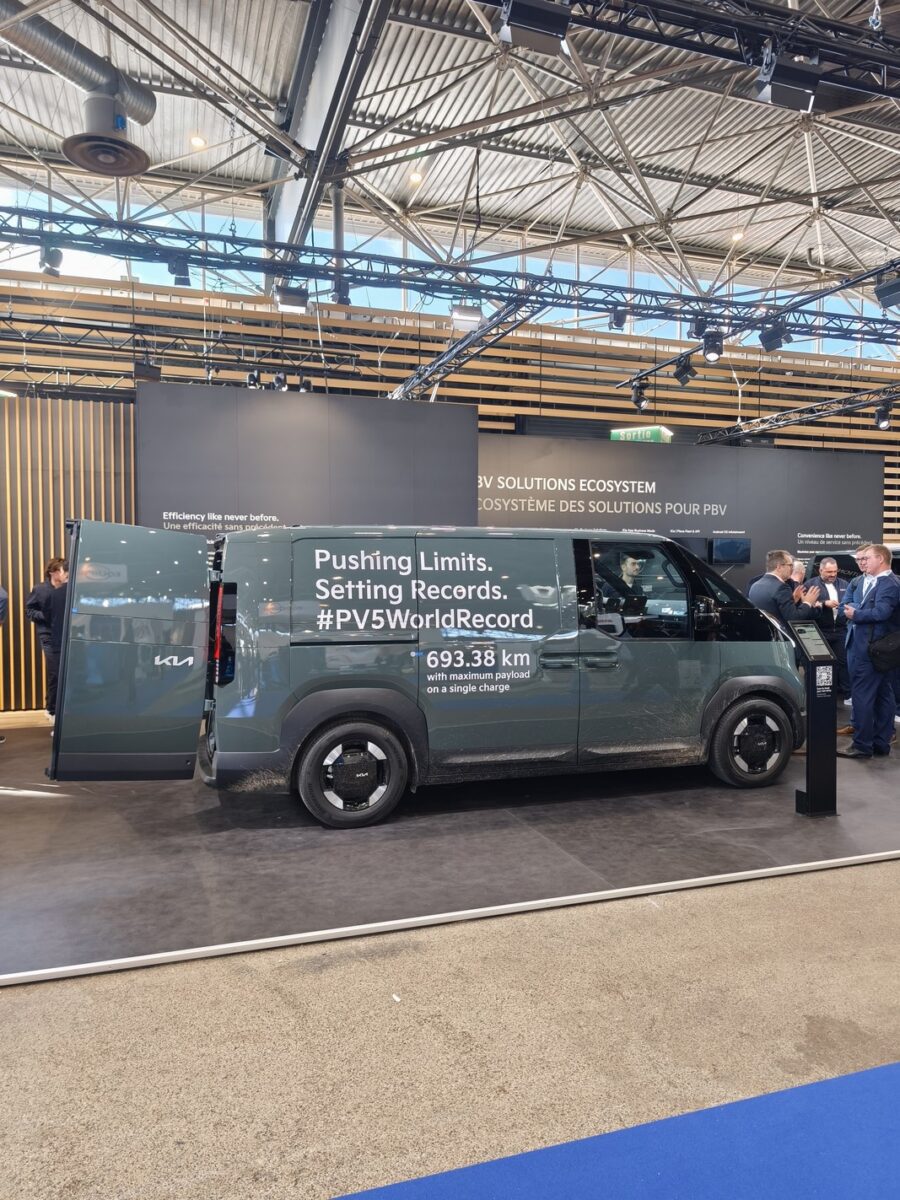 Kia zároveň pripomenula rekord vozidla PV5 Cargo, ktoré v septembri najazdilo na jedno nabitie 693,38 km, a to zdôrazňujem, že s nákladom zodpovedajúcim maximálnemu užitočnému zaťaženiu tohto vozidla – 665 kg – a v plnej premávke na cestách okolo Frankfurtu. Vozidlo malo väčší z dvojice akumulátorov – s kapacitou 71,2 kWh. Tento počin je zapísaný v Guinessovej knihe rekordov a prekonal predošlý rekord 499,75 najazdených km, ktorý od roku 2023 držal Fiat E-Scudo.