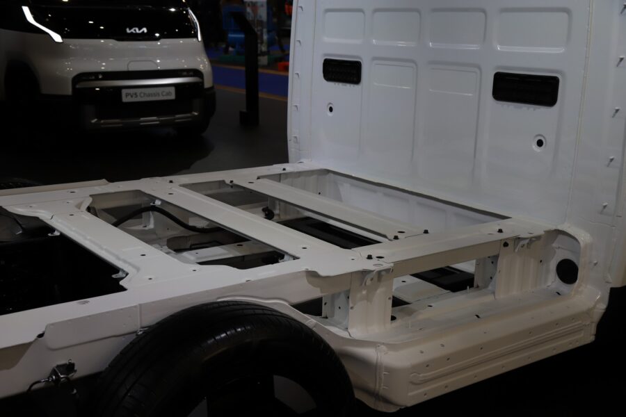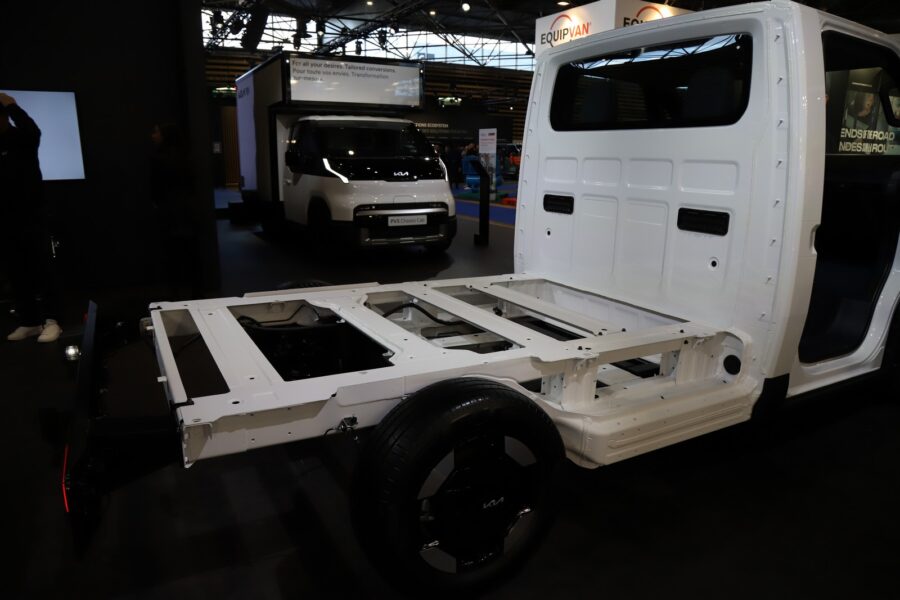 Ja som na výstavu zavítal na pozvanie Kie, ktorá tu predstavila verziu Chassis Cab nedávno uvedeného úžitkového vozidla PV5. Tú Kia vyvinula v spolupráci s poprednými európskymi prestavbármi, podporuje celý rad profesionálnych prestavieb, ako napríklad valník pre stavebníctvo alebo na prepravu poľnohospodárskeho vybavenia, sklápač na zber komunálneho odpadu, tri typy skriňových dodávok na logistiku balíkov v rámci elektronického obchodu či chladiarenské dodávky na doručovanie potravín. Zaujímavosťou je, že niektoré nadstavby sa budú vyrábať a montovať priamo v susednom závode, kde sa vyrábajú autá PV5. Konštrukcia Chassis cab zahŕňa oceľový exoskelet s dvomi prstencami a zadný ochranný rám proti podbehnutiu.