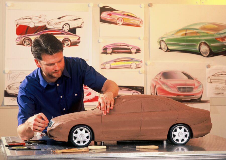 Hlina je v skutočnosti špeciálny druh plastelíny a aplikuje sa zásadne v teplej miestnosti, aby ostala mäkká a tvárna. Následne prichádza na rad päťosá fréza, ktorá masu zhruba vytvaruje do podoby auta. Finálne detaily však doladia ruky špecialistov. Ale pozor, to nie sú dizajnéri, ale špecialiti, ktorí vedia hlinu jemne orezať do želaného tvaru. Sú to presne tie isté ruky, ktoré vo výsledku rozhodnú o tom, či bude nový model pôsobiť harmonicky alebo nie.