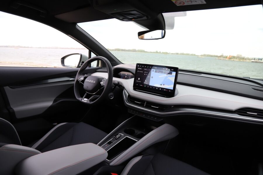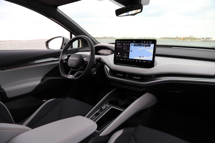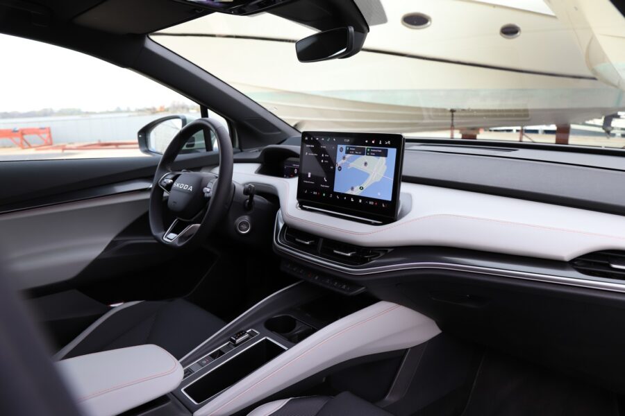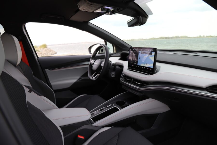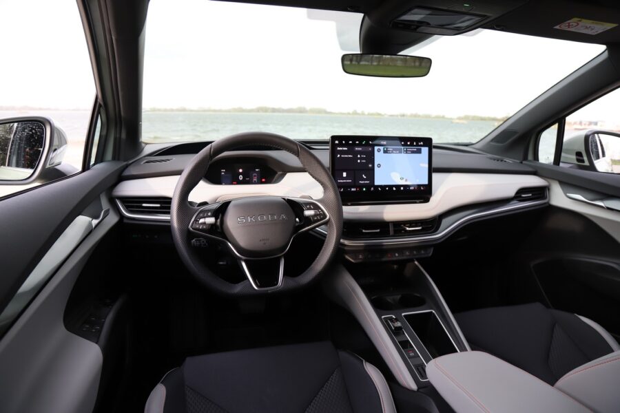Samozrejmosťou je ambientné osvetlenie interiéru, tkané koberce vpredu aj vzadu. Celý interiér pôsobí mimoriadne luxusne. Pritom nepoteší len oči, ale aj telo. Sedadlá sú totiž elektricky nastaviteľné a vyhrievané, veľké, pohodlné a dobre držia telo, takže aj dlhé cesty si budete užívať. A keby vás predsa omínal chrbát, môžete si aktivovať masáž. V „škodovkách“ je samozrejmé, že si nájdete vynikajúci posed za volantom a Elroq nie je výnimkou. To všetko umocňuje priestor, ktorý máte okolo seba – vlastne je úplne identický ako