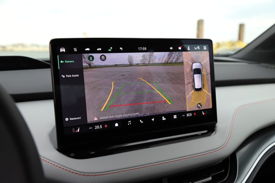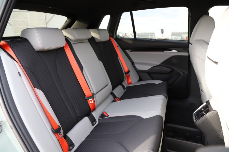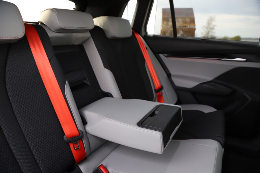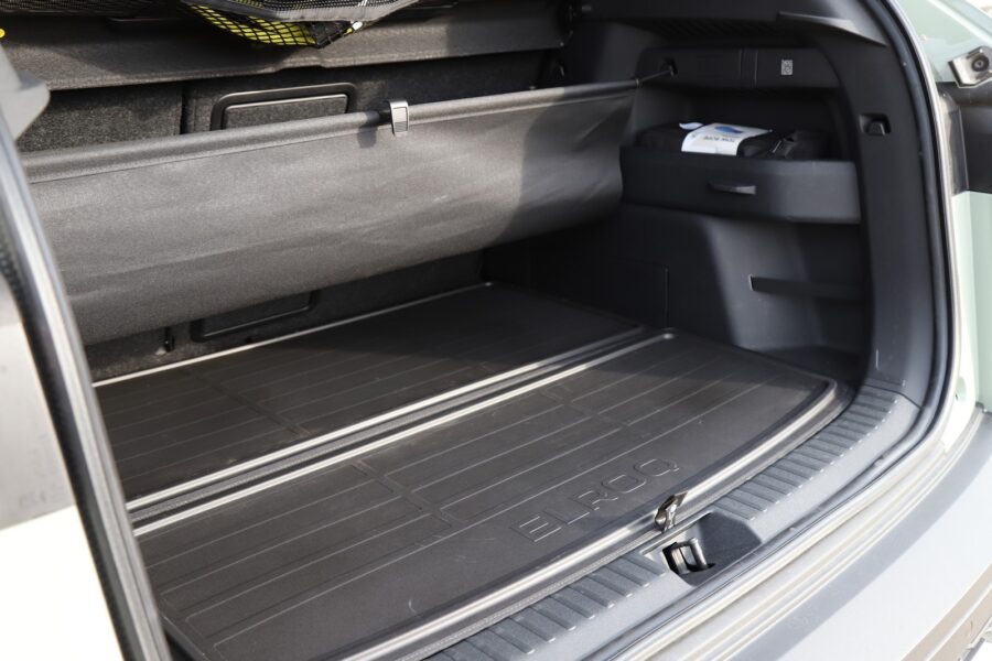 V oboch modeloch je totiž šírka interiéru vo výške lakťov 1 506 mm. A na nedostatok miesta sa nebudú môcť sťažovať ani pasažieri vzadu, Elroq je vlastne Enyaq v menšom, rozdiel je v podstate len v tom, že má kratší zadný previs, a teda menší kufor. Navyše aj zadné sedadlá sú vyhrievané a klimatizácia je trojzónová, takže aj vzadu si pasažieri môžu nastaviť vlastnú teplotu. Určite musím spomenúť aj Simply Clever prvky – sieťku pod krycím plató, cargo elementy v kufri, obojstranný koberec – z jednej strany látka, z druhej vodoodolná umelina, priečna sieťka na mokré oblečenie, vyberateľný úložný box vzadu na podlahe uprostred.