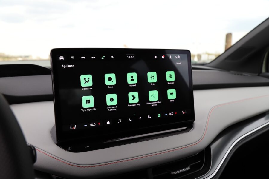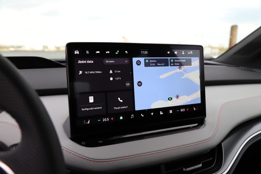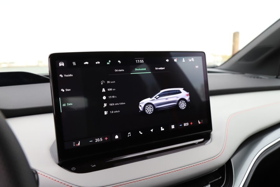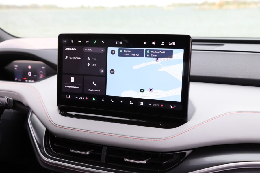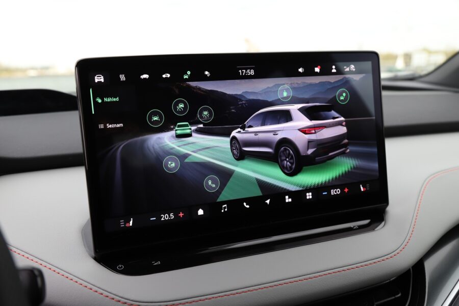 Aj technologicky je testovaný Elroq výkladnou skriňou, má všetky možné aj nemožné bezpečnostné a asistenčné systémy, 13-palcový dotykový displej, progresívne riadenie a adaptívny podvozok. Práve vďaka adaptívnemu podvozku vás testovaný Elroq dokáže v jednom momente rozmaznávať komfortnou, až plavnou jazdou a v druhom zabávať v zákrutách.