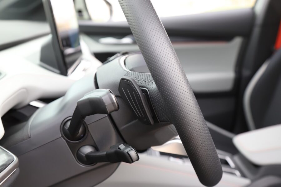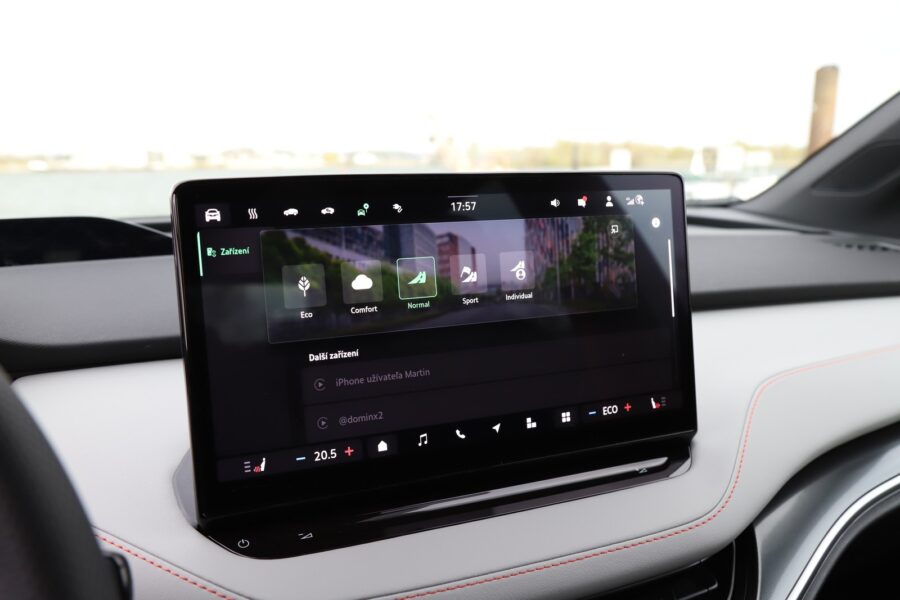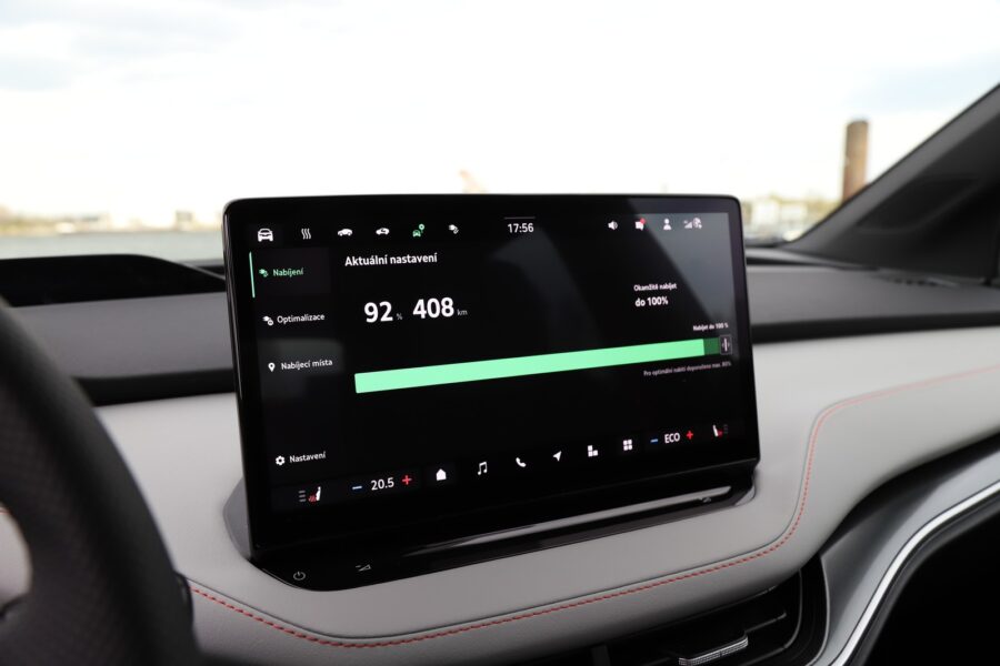 Hovorím „najkomfortnejšieho nastavenia tlmičov“, pretože tie neponúkajú iba tri stupne tuhosti Komfort, Normal a Sport ako obvykle, ale ich tuhosť môžete nastaviť v 15 krokoch, teda takmer kontinuálne. Pre mňa je iná vec veľmi dôležitá – že pádlami pod volantom dokážem regulovať intenzitu rekuperácie od voľného rolovania až po najintenzívnejšie. Striedavým prúdom môžete využiť 11 kW, nabíjanie z nuly na sto percent bude trvať 8 hodín, a pri nabíjaní jednosmerným prúdom dokáže testovaný Elroq využiť 135 kW a z 20 na 80 % by ste sa mali dostať do pol hodiny.